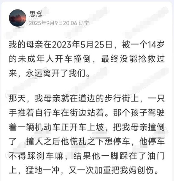一个14岁的男孩无牌车开车,杀死了一个60岁的女