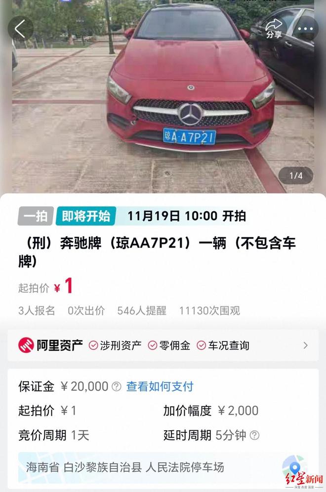 11月10日,红星新闻记者通过阿里巴巴司法拍卖平台获悉,11月19日,海南省白沙黎族自治县人民法院将对一辆琼一号牌红色奔驰轿车(不含车牌)进行司法拍卖,起拍价仅为1元。图为拍卖平台截图。拍卖平台信息显示,本次拍卖标的是一辆红色奔驰轿车。车辆详细描述中提到,奔驰车的车主是林某某,不经营。出厂日期为2020年11月19日,初始登记日期为2021年1月7日,行驶里程为7820公里。值得注意的是,拍卖完成后,过户手续将由买家自行办理。转让过程中产生的税费、违规罚款、年检等费用由买方承担。蒂拍卖不包括车牌费用。今年7月,阿里巴巴拍卖大数据查询平台对该车辆的网上查询报告显示,该车辆属于“奔驰A级2019款A型200L”,车辆状况为“正常启动”,网上查询结果为21.06万元。结果有效期为一年。红星新闻记者发现,今年8月7日,白沙黎族自治县人民法院将举行首届奔驰拍卖会。起拍价为14.7万元,但因无人报名而拍卖失败。此后,法院组织了该车的“二次拍卖”和“出售”,但由于无人报名竞拍,拍卖失败。图为涉案车辆。据悉,梅赛德斯-奔驰卷入执行申请执行人与李、杨、李、林、张(被执行人)之间的罚款法院案件。强迫)。涉案奔驰车车主为林某。红星新闻记者注意到,涉案的奔驰车被作为犯罪财产进行拍卖。起拍价仅1元,加价2000元,押金2万元。截至发稿,已有3人报名,546人设置提醒,超过1万人观看。红星新闻记者王超延伸阅读:一男子半价从哪吒拿了一辆半成品车:价格太好了,除非破产了才买。很多年轻人甚至选择从破产的汽车公司购买“半成品车”。已经宣布亏损的哪吒、极悦、高合等新电动品牌,都在他们的“抄底”名单上。 11月6日,有车主向红星资本局表示,因亏本,车价不错;一些车主表示,他们只能这样做,因为汽车公司已经不存在了。李彦伟,e中国汽车流通协会专家委员会委员xpert告诉红星资本局,一些年轻购房者购车预算并不大,但他们也想要新技术、新产品。他们通过从破产的汽车公司购买汽车来实现自己的购车偏好。不过,也有市场声音认为,“报废车”评选背后往往隐藏着担忧。 Suspension悬挂后,无法维修,车子和发动机的连接都出现问题。哪吒的“烂车”车主半价买下:价格太好了,直到破产才买。哪吒汽车母公司宣布破产重组两个月后,28岁的姜先生决定购买一辆全新的哪吒L.,从寻找车源到提车,仅用了10天。江先生告诉红星首都局,为了买这台哪吒L,他搜遍了全国汽车资源。 8月初,他从安徽到广西提车,总共行程1500多公里。 “我买它只是因为它(Nezha Auto)是nabangkarote。”谈起买车的原因,蒋先生表示,正是因为破产了,所以价格才好,如果不是破产了,他是买不到的。蒋先生在红星首都局算了一笔账:哪吒L310闪充Pro版官方指导价为14.99万元。汽车公司破产后,4S店优惠6.3万元。加上13000元的补贴,裸车费用为3800元。 “半价买车真是太好了,”他说。姜先生花了10天才把车送到采访者手中 在社交平台上,网友将姜先生购买的这辆车称为“半成品车”为“绝版车”。不光是哪吒,多家新势力企业也宣布入驻吉悦、高合、威马汽车等破产企业都在年轻人的“抄底”名单上。同样对“烂车”功效感兴趣的还有22岁的关先生(化名)。他告诉红星首都局,自己的购车预算为15万元。今年8月,他“讨价还价”买了一辆吉悦07长租版。关先生认为,同价位的新车无论从外观、配置还是用料上都无法与这款车相媲美。此前,这款车的官方指导价为21.99万元。吉悦汽车破产后,身价仅15万元。他说:“只有汽车公司消失了,我们才能承受得起。” “关先生买车”的形象来自采访者。不少年轻人跟风买了印花车,去掉了品牌,看重实用价值。很多年轻人买车都是“逆潮流”。在广州经营二手车经销店的陈先生(化名)告诉红街网。ar首都局称,他的经销店拥有高合全系列新车和二手车。购买汽车的大多数是年轻人。除了外观之外,他们还对性价比感兴趣。以高合Hiphi y车型为例。 2023年7月发布时的官方指导价为33.9万元-44.9万元。现在在陈先生的店里,最低的价格也有12万多元。他表示,他并不担心卖不出去。高河的汽车供应量不大,买车的人也不多。他的店最多一个月能卖20多辆车。对于年轻人“便宜买”半成品车的现象,中国汽车流通协会专家委员会专家委员李彦伟11月6日向红星资本局表示,一些年轻购房者购车预算并不大,但也想要新技术、新产品。他们通过购买故障车来实现买车的愿望公司。 “购买”未完工汽车的年轻人不会不停地行动。江先生于2024年5月上旬试驾了哪吒,他被该车的功能和配置所吸引,但因价格和提车所需时间而放弃。 k公司的倒闭成为了买入的机会。可见,失去品牌后,汽车的实用价值反而增加了。另一位购买过吉悦“烂尾车”的明先生(化名)也向红星资本局表示,以这款车型、电池和配置,再加上今天的价格,市场上已经没有这样的选择了。 “大多数人都哭着买‘破产车’,即使现在很便宜,他们仍然认为这是钱浪费了,不敢冒险。”蒋认为,花7万多元买了一辆“报废电车”,行驶了10万公里后,汽车成本就流失了“报废车”。 “报废汽车”在等待后不可用NG了半年的哪吒网络事件“销售时间肯定不如原品牌,所以尽量避免发生意外。指向高合授权的第三方安排提供服务。